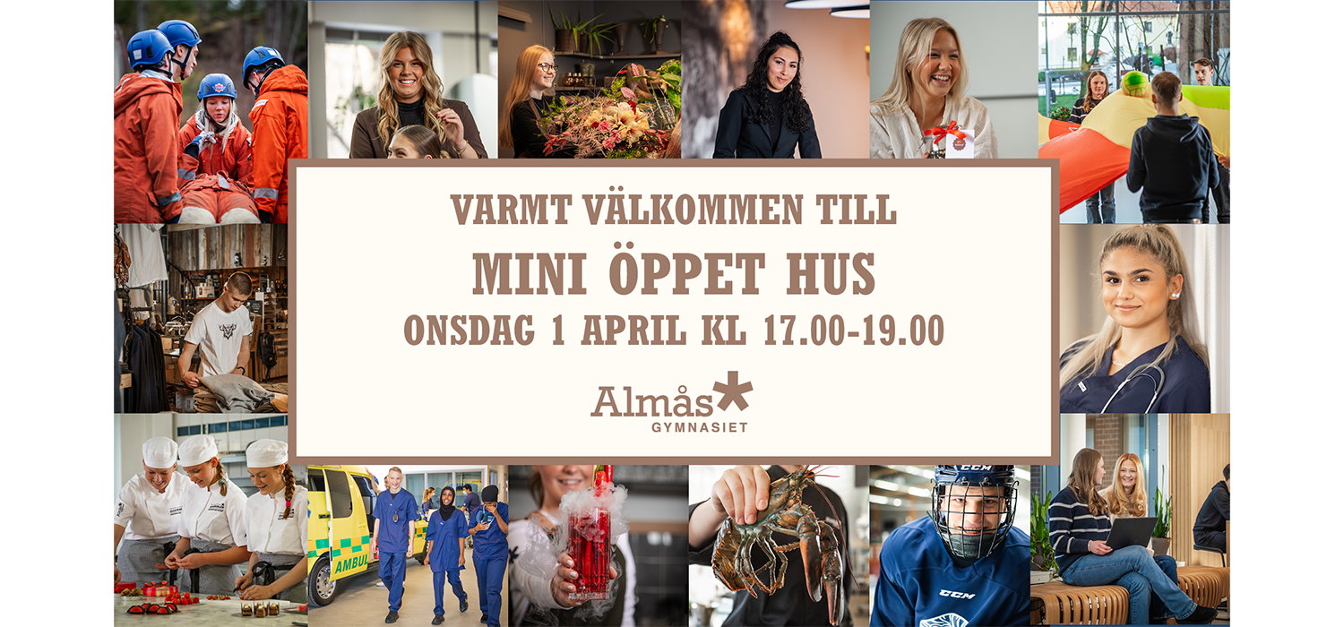 På vårt Mini Öppet Hus får du prova på, träffa elever och lärare och uppleva hur undervisningen ser ut i verkligheten. Testa aktiviteter, ställ frågor och upptäck vilken utbildning som kan passa dig.
